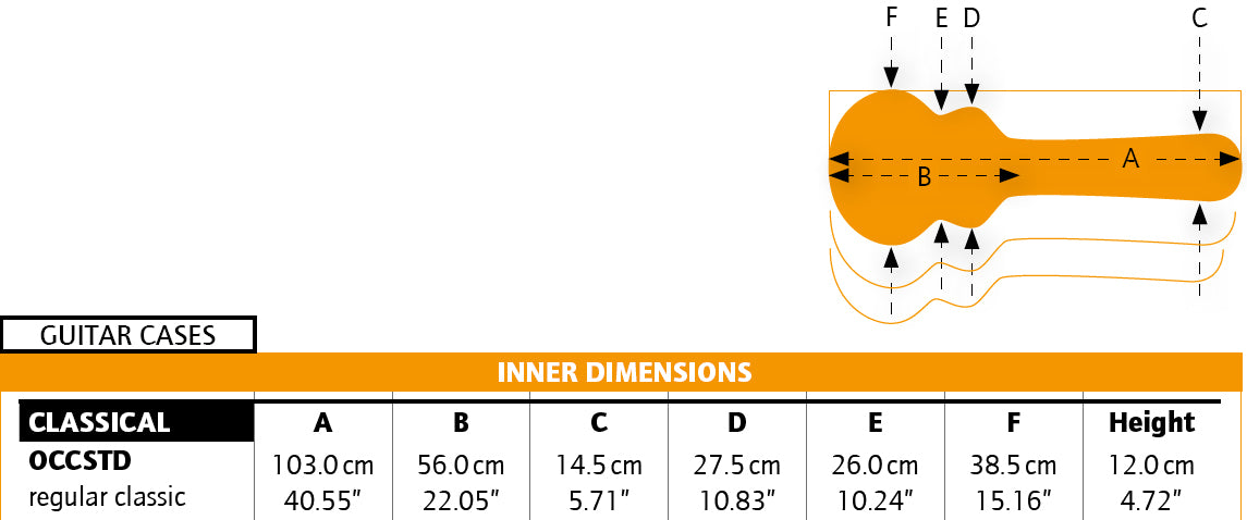 ORTEGA Gitarrenkoffer Classic - schwarz, flat top, Economy Series, Chrom Hardware, 120mm tiefe