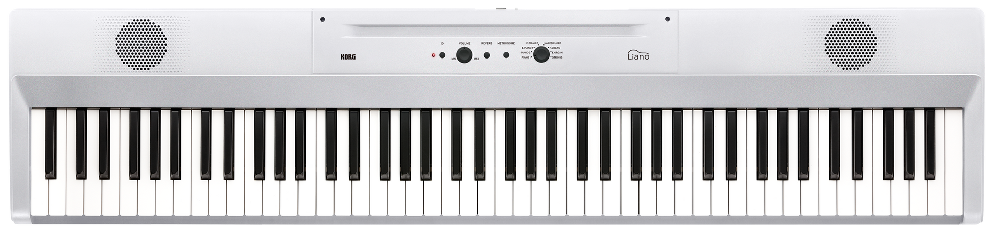 KORG bringt mit dem Liano ein maximal kompaktes und sehr leichtes Digitalpiano auf dem Markt. Mit nur 6 Kilogramm Gesamtgewicht, 130 cm Breite und nur 7 cm Höhe ist es ohne jede Mühe überall hin zu transportieren. Die leicht gewichteten 88 Tasten der LS-Tastatur kommen gerade denen entgegen, denen eine echte Hammermechanik zu schwergängig ist. Acht hochwertige Klangfarben - anwählbar über ein Datenrad - und ein maßgeschneidertes Bassreflex-Lautsprechersystem sorgen trotz der minimalen Abmessungen für einen vollen Klang. Ein Hall- und ein Chorus-Effekt, ein Metronom sowie Anschlüsse für Kopfhörer und Computer (USB-MIDI und USB-Audio) runden das kleine Liano ab. Der Batteriebetrieb (6x AA) erlaubt das Pianospiel an nahezu jedem Ort. Mitgeliefert werden ein Dämpferpedal, ein Notenständer und eine Software-Bundle, bestehend aus einer Musik-Lernsoftware sowie KORG Module und KORG Gadget 3 Le.