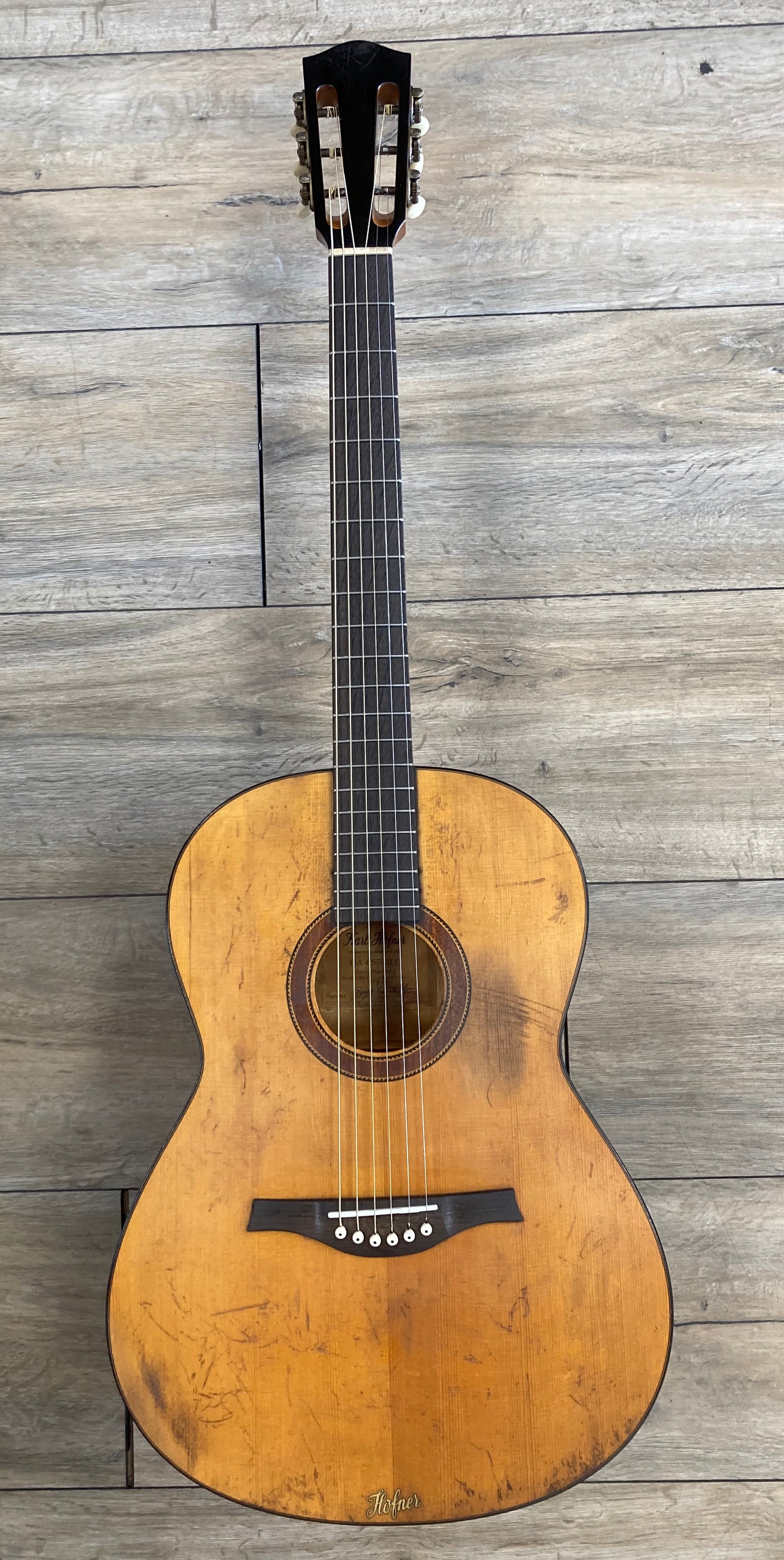 • künstlich gealterter Konzertgitarrenkorpus