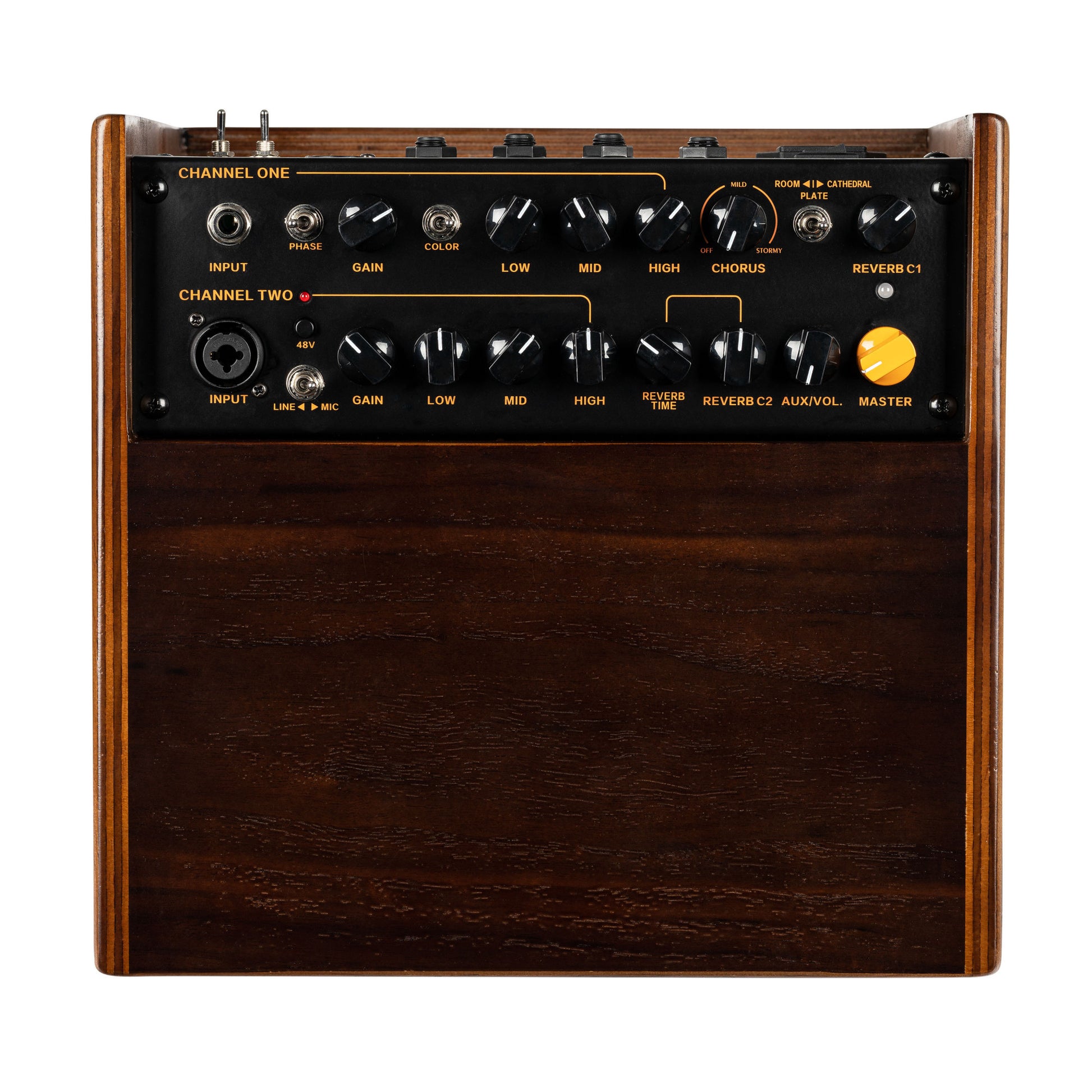 Nach dem Erfolg des allerersten Akustik-Verstärker-Stacks bietet der C One akustischen Musikern eine Vielzahl von Funktionen in einem handlichen Format. Mit einer Leistung von 100 Watt, einer integrierten DSP-Effekteinheit und zwei separaten Kanälen ist der C One optimal für Auftritte und zum Üben geeignet. Dank des Boxenflansches kann er sogar als kompakte PA für den nächsten Gig genutzt werden. Die mitgelieferte Staubschutzhülle schützt Ihren Verstärker, wenn er nicht genutzt wird, oder auf dem Weg zum nächsten Gig. Der Verstärker-Combo kommt in zwei Holzvarianten: einem hellen Eschen- oder einem dunklen und eleganten Nussbaum-Gehäuse.