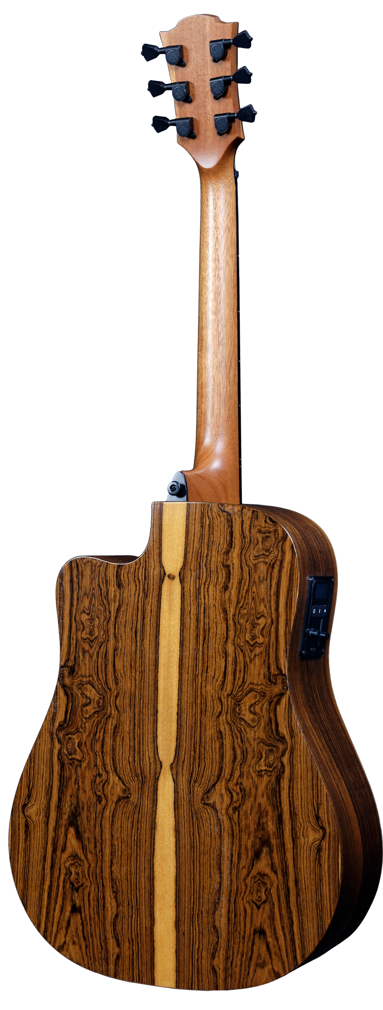 Die THV30DCE bringt raffinierte Details und akustisch überzeugende Features mit: Die Decke besteht aus speziellem Bearclaw-Fichtenholz mit einer besonderen Maserung. Dieser wird eine höhere Stabilität nachgesagt. Zusammen mit ihrem tiefdunklen Bocote-Korpus sieht die THV30DCE stilvoll aus und spricht gleichzeitig akustisch sehr gut an. Ihre reichhaltigen Mitten sowie die präsenten Höhen und harmonisierenden Tiefen sorgen für einen beeindruckenden Gesamtklang.