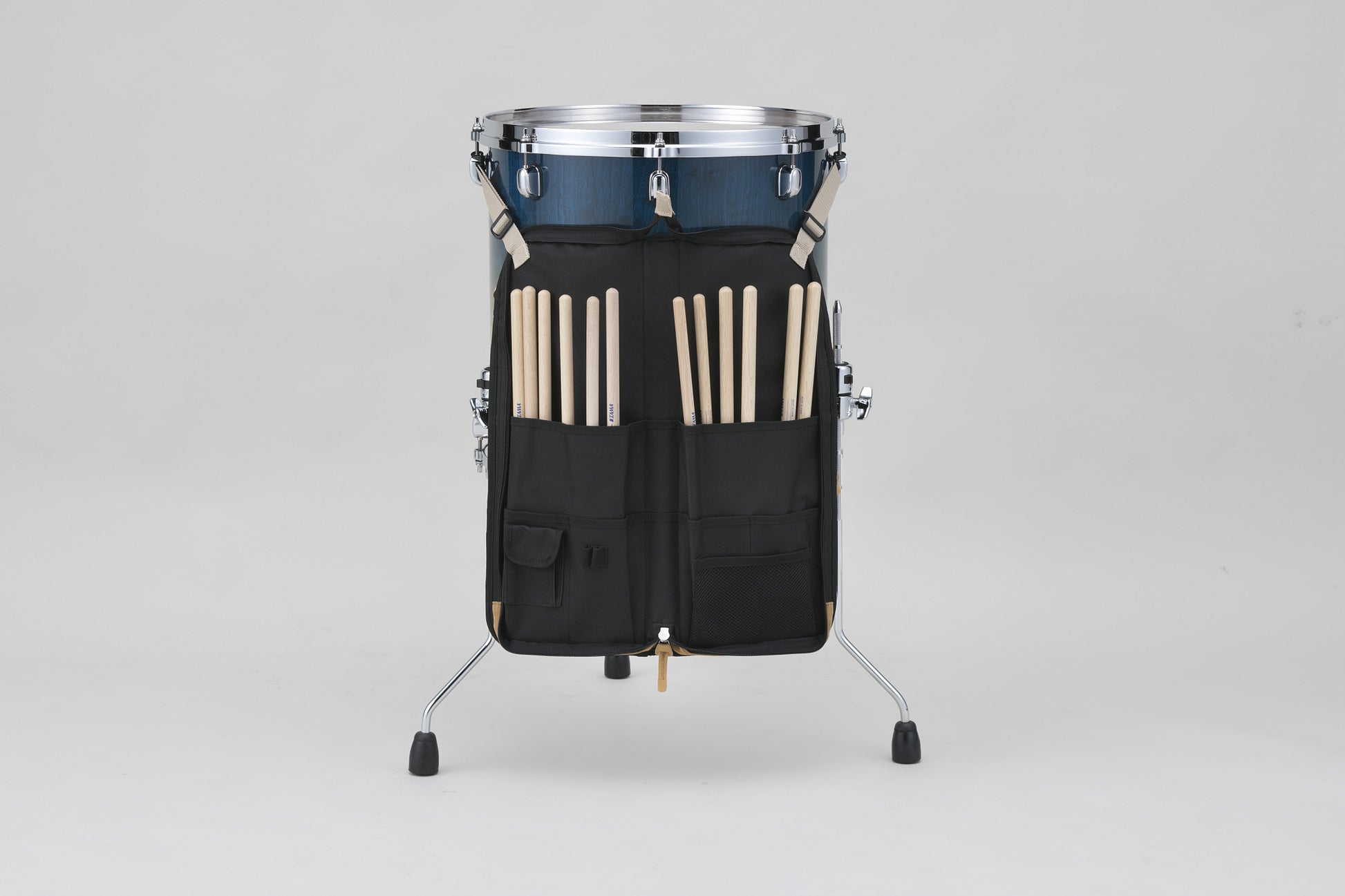 Der Powerpad TSB24 Designer kommt in vier Farb Optionen akzentuiert mit Wildledermatrial. Er kann bis zu 12 paar Drumsticks oder Schlägel aufnehmen. Mit seinen längenverstellbaren Haken ist es möglich die Tasche an einer Floor Tom zu befestigen. Des weiteren gibt es kleine Innen Taschen für kleines Drum Zubehör und einen Schultergurt.
