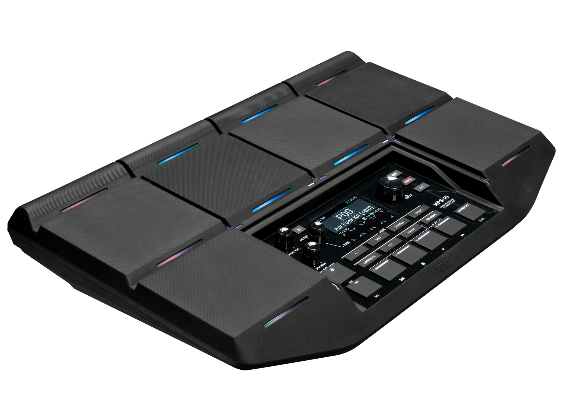 Mit seinem einzigartigen Layout bietet das MPS-10 trotz seiner kompakten Ausmaße genügend Raum für 10 Drum Pads in Standardgröße. Ab Werk stehen bereits 100 vorbelegte Kits, über 2.350 zuweisbare Pad-Instrumente sowie 3.000 Samples aus den Bereichen Akustik Drums, Percussion, elektronische Drums sowie SFX, Hits und Impacts zur Verfügung. Dank der integrierten Sampling-Funktion mit Audio- und Mikrofoneingängen sowie des 32 GB großen Speichers lässt sich das MPS-10 allerdings auch nach Herzenslust mit eigenen Samples erweitern und somit völlig auf den persönlichen Geschmack hin anpassen. Der clevere 4-Spur-Looper lädt zu ausladenden Live-Performances ein, und die so erzeugten Audiospuren lassen sich zueinander synchronisieren und auf Wunsch als einzelne WAV-Dateien exportieren. Dank seiner Polyphonie von 48 Stimmen lässt das MPS-10 auch komplexeste Pattern zu, und die clevere Smooth Sound Transition Funktion (SST) ermöglicht ein natürliches Ausklingen längerer Sounds beim Umschalten der Kits. Die Effektsektion bietet mit einem Master Reverb, zwei Insert-Effekten sowie einem zusätzlichen Main-Effekt massig Möglichkeiten zur Klangbearbeitung einzelner Instrumente oder eines kompletten Kits. Eine weitere Besonderheit stellen die vier CC Pads am oberen Rand des MPS-10 dar, die die Position des Anschlags auf der X-Achse erkennen und anhand derer Effekteinstellungen wie z. B. Filter Cutoff in Echtzeit steuern können. Trotz seines eleganten Designs wurde das MPS-10 für den Einsatz „on the road“ konzipiert und steckt somit auch den härtesten Tour-Alltag locker weg. Die 10 Drum Pads bestehen aus einem widerstandsfähigen Material mit hervorragenden Rebound-Eigenschaften und vermitteln so ein angenehm natürliches Spielgefühl. Über ihre farbcodierte LED-Beleuchtung geben sie außerdem zu jedem Zeitpunkt visuelles Feedback über ihren aktuellen Betriebszustand. Dank der zusätzlichen Eingänge können optional bis zu vier weitere Trigger, zwei Fußtaster sowie ein Expression-Pedal mit dem MPS-10 verbunden werden. Über die vier Audioausgänge lassen sich außerdem die Ausgangssignale auf unterschiedliche Kanäle routen, und dank der MIDI-OUT-Buchse können auch externe Klangerzeuger über die Pads angesteuert werden. Das großzügig bemessene Farb-Display liefert in jeder Situation die nötigen Informationen und lässt sich auch bei schwierigeren Lichtverhältnissen deutlich ablesen. Besonders komfortabel lassen sich die einzelnen Sounds und Kits mithilfe der kostenlosen Editor-Software auf einem über USB angeschlossenen Computer bearbeiten und verwalten.