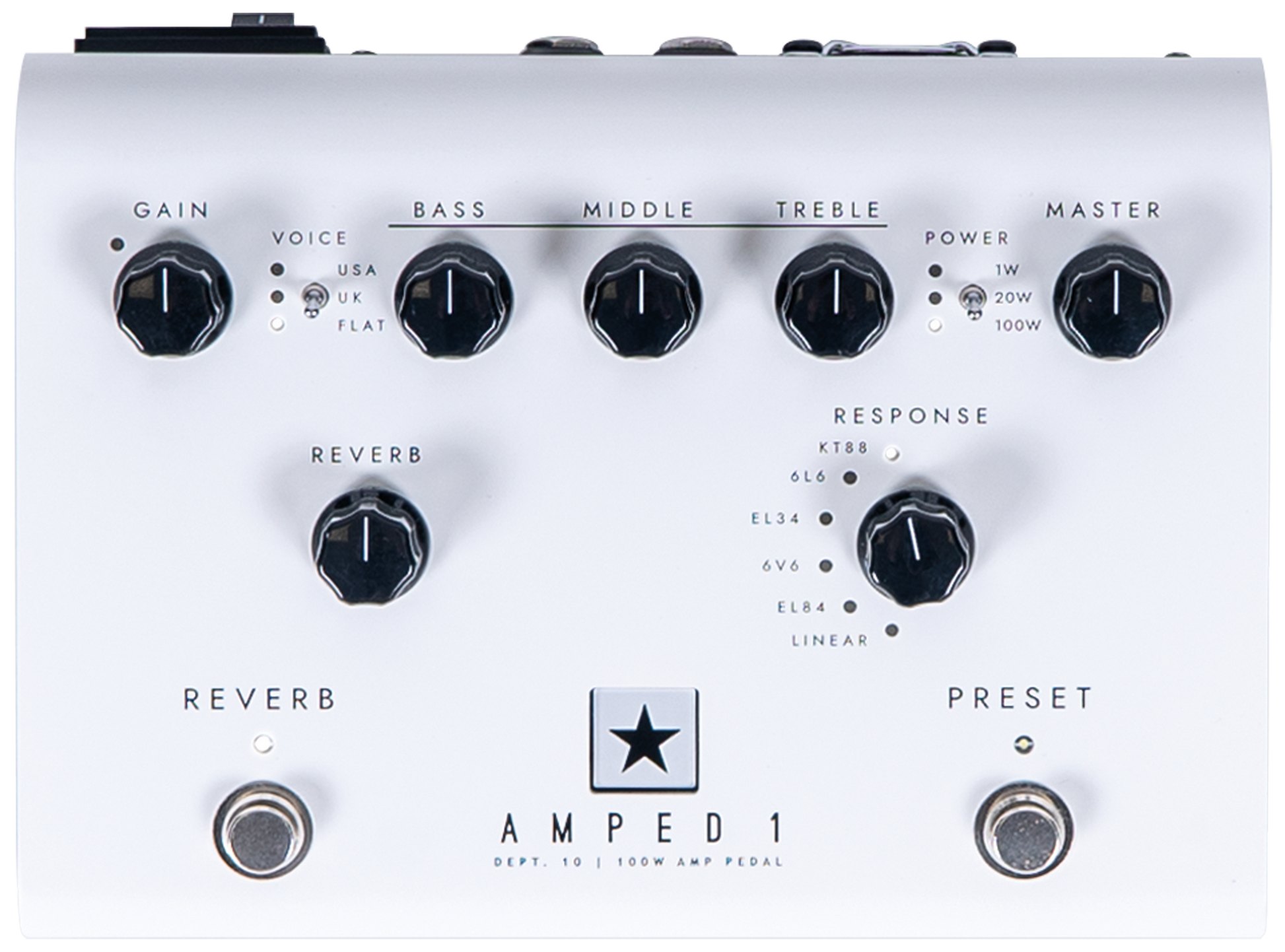 Der Dept. 10 Amped 1 ist ein professioneller 100 Watt Gitarrenverstärker in einem kompakten Pedal. Dieses verwandelt jedes Pedalboard, Modeller oder Multieffektgerät in einen bühnentauglichen Verstärker und ermöglicht Gitarristen, ihren Sound überall mit hinnehmen zu können. Maximale Ausgangsleistung und optimales Soundverhalten mit jeder 8 oder 16 Ohm Box. BLACKSTAR´s patentierter Response Schalter bietet verschiedene und authentische Röhrensimulationen und ein Spielgefühl, wie man es von einem Röhrenverstärker her kennt. Mithilfe der CabRig Technologie können Boxen-, Mikrofon sowie Raumsimulationen angepasst und über XLR oder Stereobuchse ausgegeben werden. Ein USB Anschluss ermöglicht direktes Aufnehmen mit einer DAW ohne, dass ein zusätzliches Interface benötigt wird.