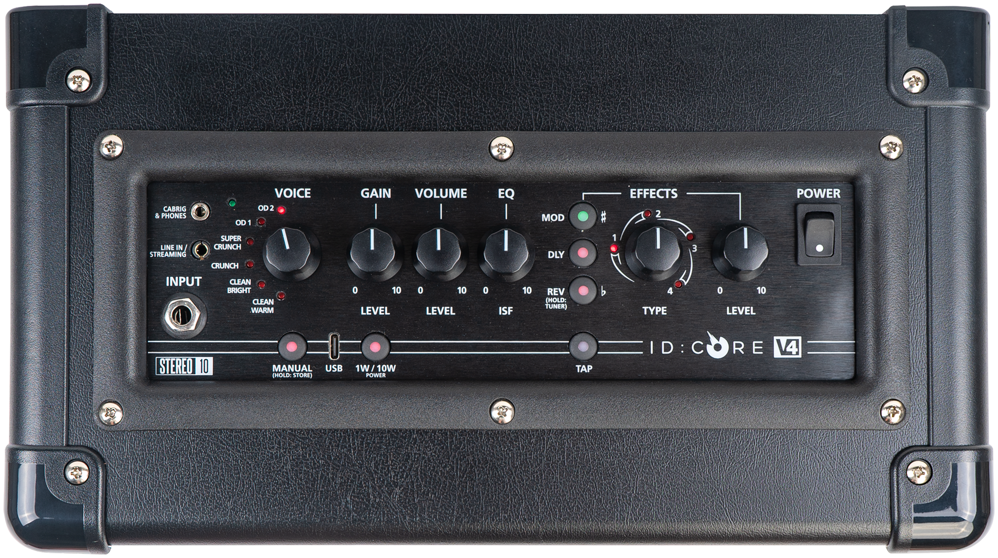 Die ID:Core V4 Verstärker sind mit 10W, 20W oder 40W Leistung erhältlich und aufgrund ihrer leichten Bauweise und integrierten Effekte sowohl für Anfänger als auch Profis geeignet. Der ID:Core 10 V4 bietet die gewohnt intuitiven Bedienelemente eines traditionellen Verstärkers, ist aufgrund seiner Programmierbarkeit aber deutlich vielseitiger. Über den Voice Regler lassen sich sechs verschiedene Sounds Clean Warm, Clean Bright, Crunch, Super Crunch, OD 1 und OD 2 aufrufen. In Kombination mit dem ISF Regler können diverse Sound von amerikanisch bis britisch und dazwischen eingestellt werden. Die Effektsektion des Amps erzeugt breite Stereo-Modulations, Delay- und Reverb-Effekte in Studio-Qualität. Mit der mitgelieferten Architect Software lassen sich über USB-C weitere Einstellungen vornehmen und abspeichern. Der Line In / Streaming Eingang ermöglicht, neben dem Abspielen von Musik, mithilfe eines 3,5mm Kabels das Streamen direkt über ein Smartphone.
