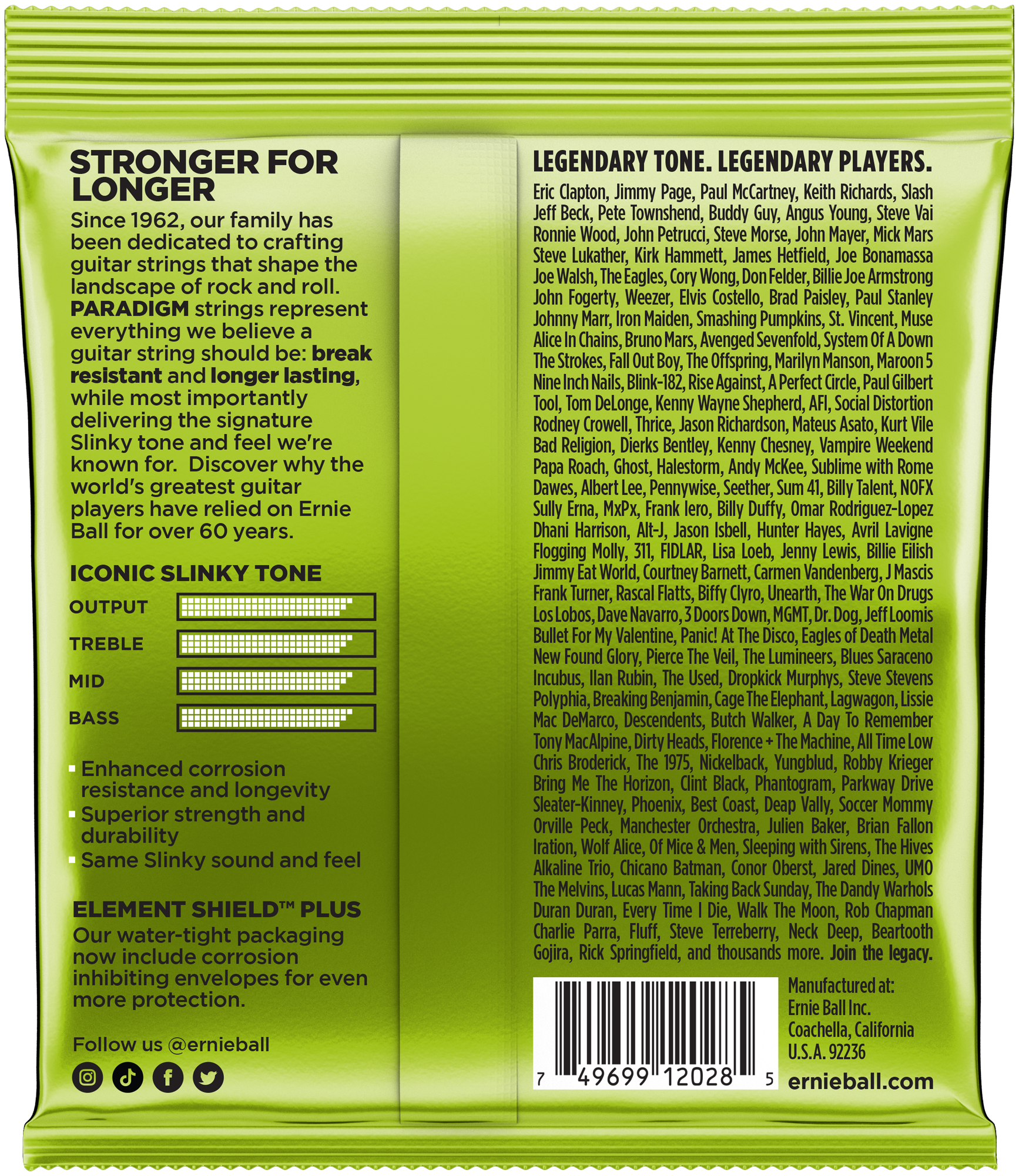 Paradigm Electric Slinky Saiten bieten eine beispiellose Festigkeit und Langlebigkeit bei 100% Slinky-Ton und -Spielgefühl.