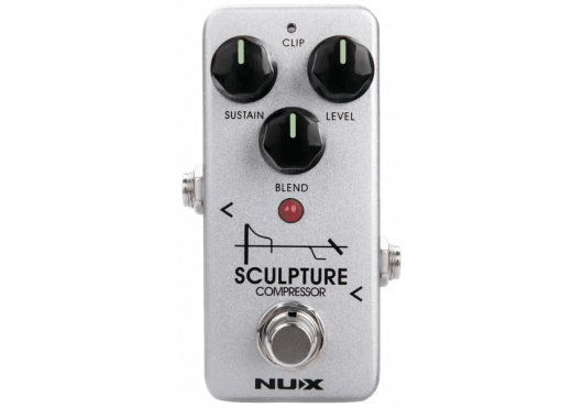 Das NUX Sculpture Compressor-Pedal passt den Lautstärke-Ausgangspegel an und schärft die Signale an den oberen und unteren Kanten ihrer Sinuswelle. Wenn du die Saiten deiner Gitarre anschlägst, glättet das Pedal die (lauten) Pegelspitzen und erhöht das Sustain, indem es den Pegel der abklingenden (leisen) Noten anhebt. Mit dem Sculpture-Pedal lässt sich somit eine Signalgrundlage schaffen auf dem der Rest der Effektkette aufgebaut werden kann.
