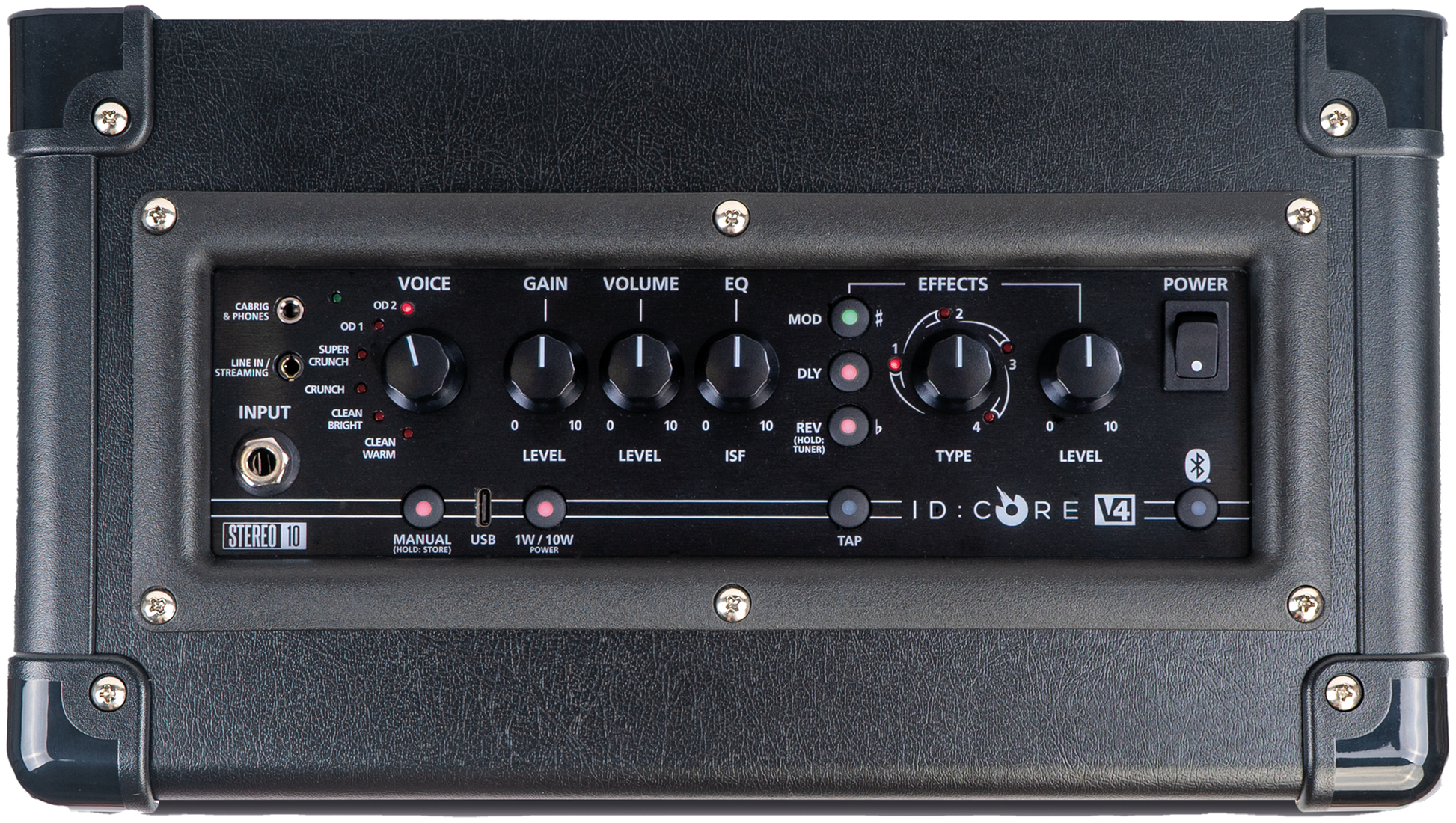 Die ID:Core V4 Verstärker sind mit 10W, 20W oder 40W Leistung erhältlich und aufgrund ihrer leichten Bauweise und integrierten Effekte sowohl für Anfänger als auch Profis geeignet. Der ID:Core 10 V4 Bluetooth Audio bietet die gewohnt intuitiven Bedienelemente eines traditionellen Verstärkers, ist aufgrund seiner Programmierbarkeit aber deutlich vielseitiger. Über den Voice Regler lassen sich sechs verschiedene Sounds Clean Warm, Clean Bright, Crunch, Super Crunch, OD 1 und OD 2 aufrufen. In Kombination mit dem ISF Regler können diverse Sound von amerikanisch bis britisch und dazwischen eingestellt werden. Die Effektsektion des Amps erzeugt breite Stereo-Modulations, Delay- und Reverb-Effekte in Studio-Qualität. Mit der mitgelieferten Architect Software lassen sich über USB-C weitere Einstellungen vornehmen und abspeichern. Die Bluetooth Audio Funktion ermöglicht, neben dem Abspielen von Musik, das Streamen direkt über ein Smartphone.