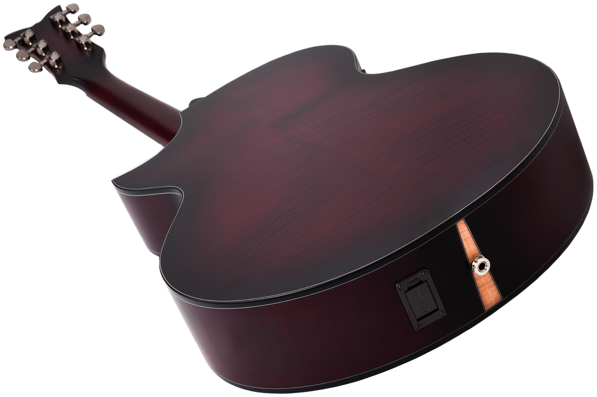 Als Tonabnehmer in der Brücke ist ein Fishman Sonicore Piezo-Pickup und in der Zarge ein Fishman Isys+ Preamp an Bord.